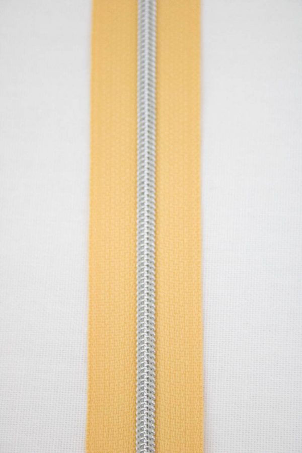 Qualitätsreißverschluss, in Deutschland hergestellt in senfgelb/silber.