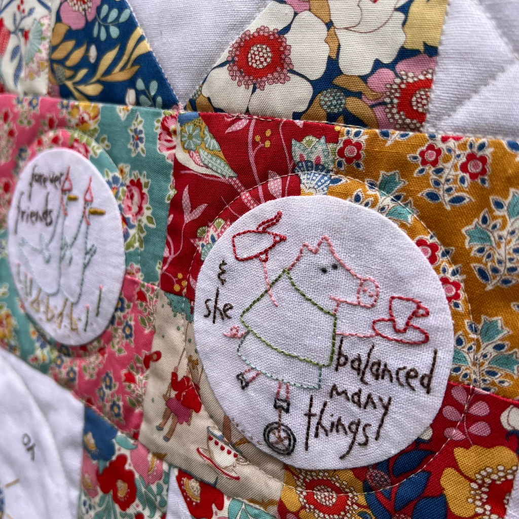 I was the designer for the 2024 Homespun block-of-the-month where I created the quilt 'Sunshine and Lollipops'. This quilt was made using Tilda’s Jubilee collection of fabric to celebrate Tilda’s 25th year in business. The quilt was created along the same theme as Tilda’s fabric of fun and celebration.