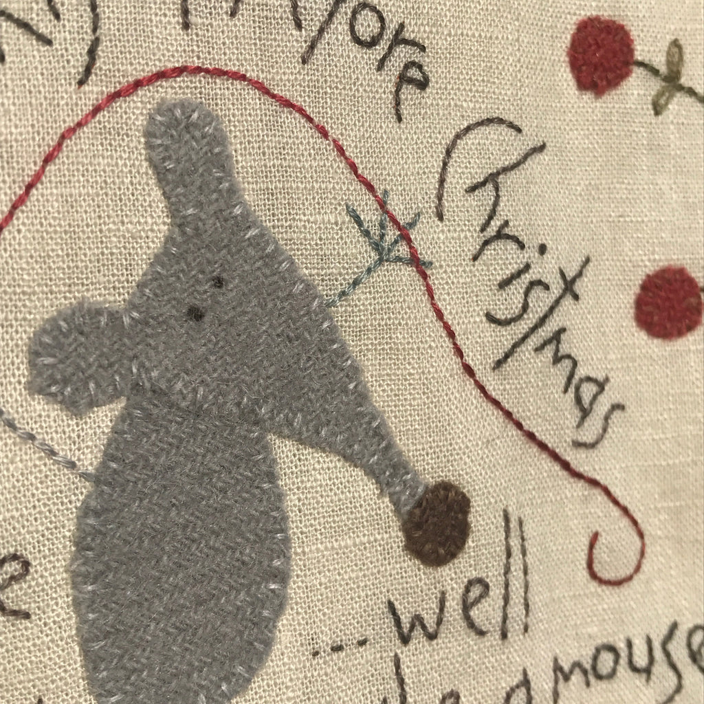 My latest Block-of-the-Month! This one has been SO much fun to stitch with simple woven wool applique and stitchery. The wallhanging has all things to do with Christmas with a little whimsy thrown in. There are many images you could use again and again to not only make the wall hanging, but you could make bags, cushions, a naughty & nice list, pincushions, needlecases, the list goes on!