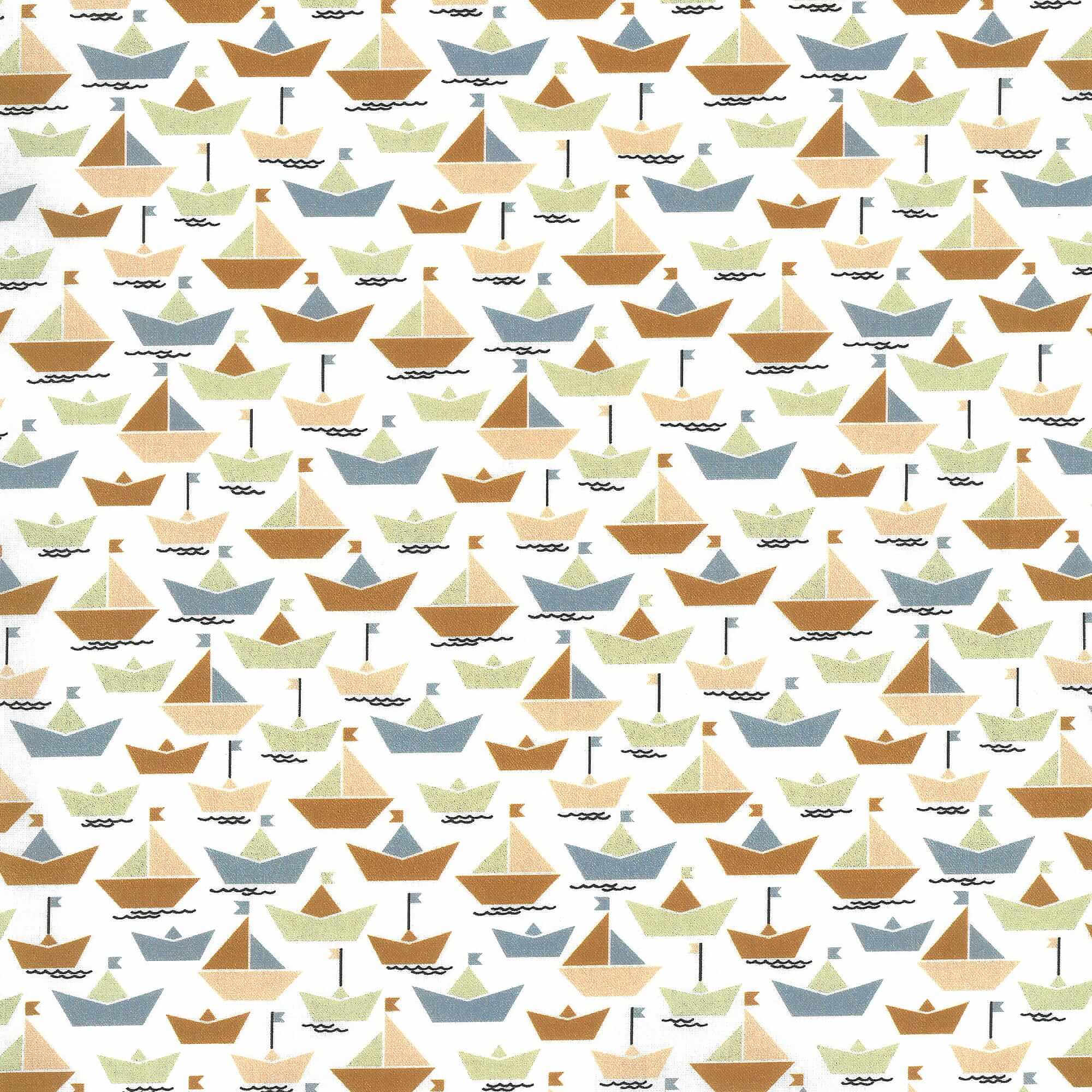 Wunderschöner Druckstoff mit Schiffen in weiß, braun, bleu, rosa, grün aus der Serie Fehmarn von Westfalenstoffe AG.
